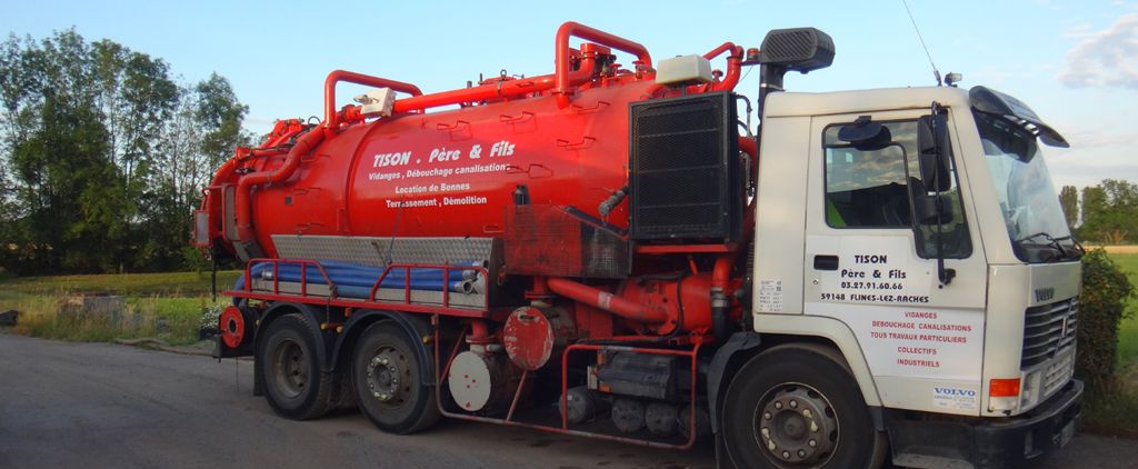 Basée à Flines-lez-Râches dans le département du Nord (59), l'entreprise Tison Père et Fils procède à la vidange et au curage de vos fosses septiques, au débouchage de canalisations et des fosses WC étanches, pour les particuliers et petites entreprises.